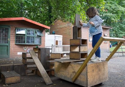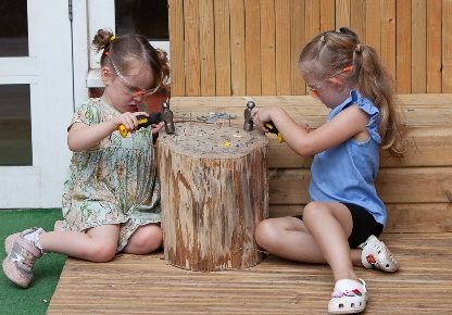 Children will ‘tinker’ with the objects available to them, taking them into places, spaces, and orientations outdoors that would be difficult to replicate indoors. Educators do not need to teach children how to play - but just need to step out of the way, enabling children’s imaginations to nurture their schemas.