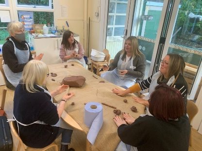 The educators involved in this project recognised that clay was an underused resource in their settings and its benefits were not fully understood by all staff. Using practical training led by Thelma Miller, staff formed a book group and shared reading of key texts by Lucy Parker, Helen Tovey, Tina Bruce and Jenny Spratt.