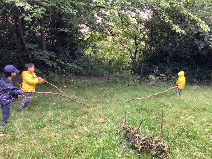 Within the space the children are encouraged to be curious and freely explore in the natural environment, which provides the opportunity to be responsive to the children’s interests and natural curiosity. In a space with only nature as the resource we found the children to be curious about key concepts in an entirely different way to the more conventional garden space. They built with sticks and leaves, they found patterns and colours in flowers and bark, they discovered tiny creatures living in their natural world. Some children just sat and quietly observed while others found the freedom of the open space exhilarating and exciting.