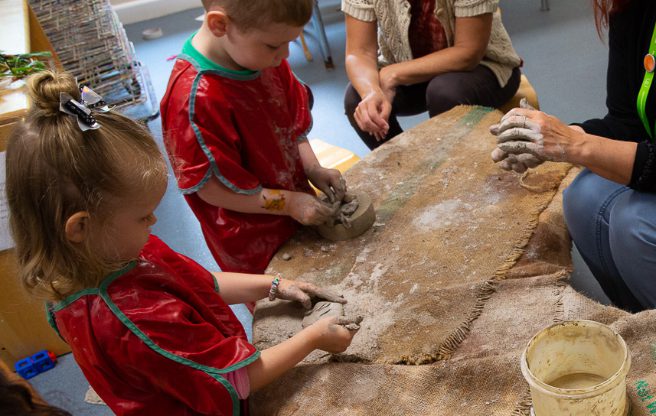 Educators at two nursery schools report on their Froebel Trust funded project 'rediscovering the benefits of clay'. Report shared in Jan 2023