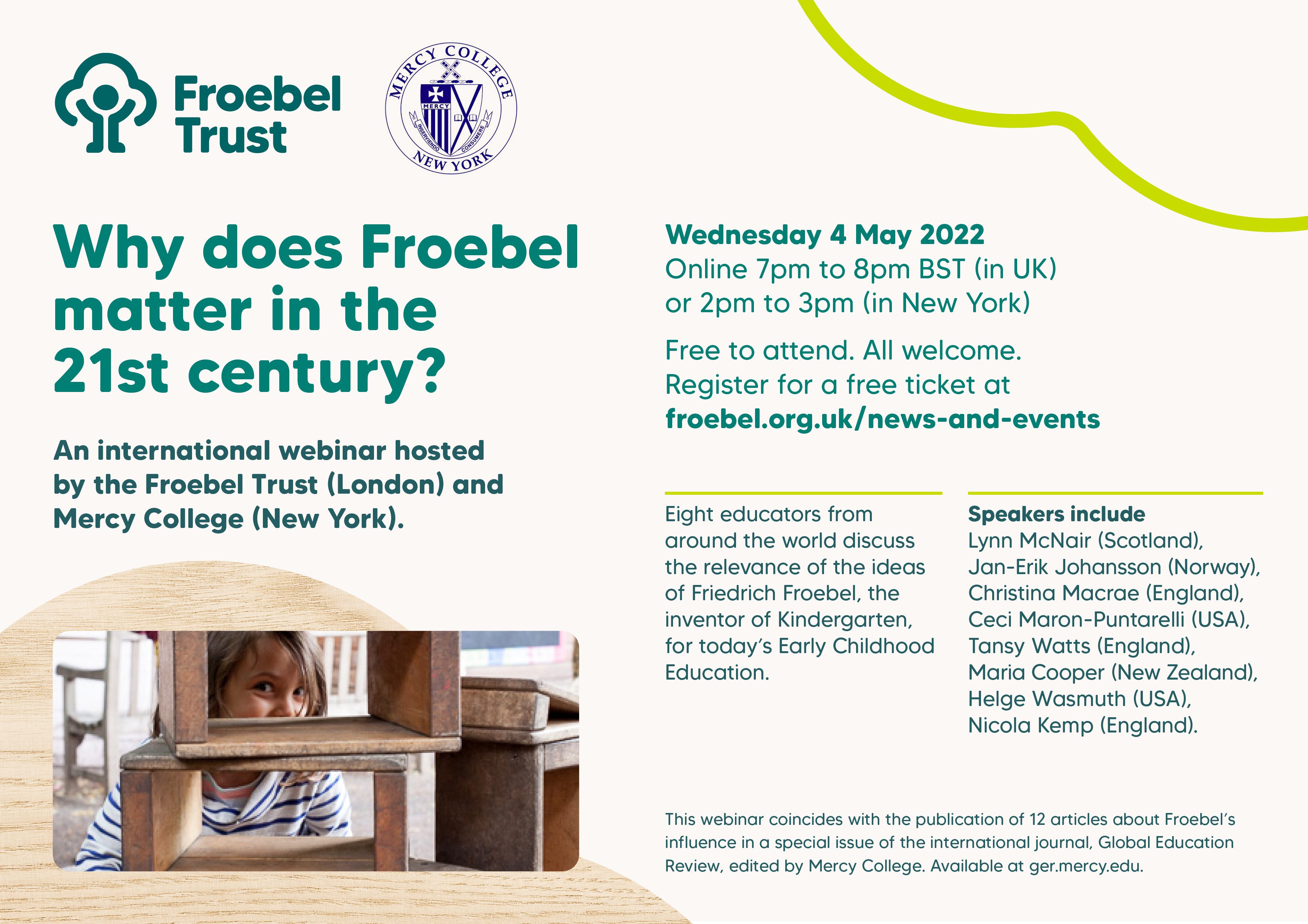 Eight educators from around the world discuss the relevance of the ideas of Friedrich Froebel for today's Early Childhood Education. A Froebel Trust and Mercy College webinar recorded on 4 May 2022.